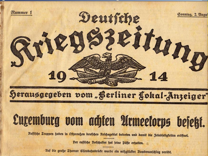 Also - zuerst hatten wir den Burgfrieden. Dann das "terroristische Attentat" von Gavrilo in Sarajevo, das Anlaufen der Maschinerie, und dann die Bewilligung der Kriegskredite. Vier Jahre und einige Millionen Tote später gab es die hier angedeuteten Rückwirkungen der Außenpolitik auf die Innenpolitik. Bluthund Noske setzte dem ein Ende, und Weimar steppte fröhlich in den zweiten Versuch.