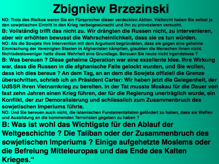 ------------------------------------------------------------------- Abteilung Geschichtslügen ![]() Angesichts der Debatten um Steinbachs Versuch einer Geschichtsrevision merken wir höflich, aber bestimmt an, dass Polen 1939 mit seiner Mobilmachung nicht nur nicht beabsichtigte, Deutschland zu überfallen und somit Selbstmord zu begehen. Im Gegenteil. Die polnische Führung war sich eben wie die gesamte Welt im klaren darüber, was Deutschland beabsichtigte. Die Besetzung der Rheinlande, Wiedereinführung der Wehrpflicht und Aufrüstung, Verlassen des Völkerbundes, "Anschluß" Österreichs, Besetzung des Sudetenlandes und dann eben im Marz 1939 auch der Rest-Tschoslowakei zeigten im Verbund mit dem Spanienkrieg, was intendiert war und wie Hitler dies durchsetzen wollte. Mit klammheimlicher Billigung der Westmächte. Das ist aber nur eine Seite. Die andere Seite der polnischen Positionierung bestand in ausgiebigem Russenhass und Deutschfreundlichkeit. Die polnischen Teilungen scheinen nur bedingt zu einer Equidistanz zu allen Besatzerstaaten geführt zu haben. Gegen Russland - nun eben aber die Sowjetunion - wurde direkt nach dem Ersten Weltkrieg im Jahre 1920 Krieg gefürt, was weite Eroberungen über die Curzonline hinaus erbrachte. Diese Eroberungen wurden nach 1945 rückgängig gemacht - was wiederum die sog. "Westverschiebung" Polens ergab. Mein Großvater gab als deutscher Ofizier schon im Ersten WK Marschall Pilsudski die Hand - was beispielhaft auf die Seite Pilsudskis verwies. Die Streitigkeiten mit Deutschland sollten friedlich gelöst werden - der Nichtangriffspakt Polens mit hitlerdeutschland und die Versuche, das Völkerbundskonstrukt Danzig, den "Korridor" etc. zu verhandeln, reichten bis Ende April 1939. Und 1938 tat sich Polen hervor, indem es sich von der von Chameberlain und Daladier gebilligten Teil-Besetzung der Tschechoslowakei ein Stückchen abschnitt - siehe das obige Dokument. Anders gesagt: Polen stand den Nachbarstaaten Ddeutschland, Tschechoslowakei und Russland unfreundlich gegenüber - am freundlichsten aber noch immer gegenüber Deutschland. Ohne dafür einen Pfifferling zu erhalten, und dann mit dem Ausrottungskrieg Hitlers bedacht zu werden. Bis hinein in den Warschauer Aufstand zieht sich hingegen die Russlandfeindlichkeit, die immer wieder von den Westmächten genährt wurde. Und wird. Bis heute. Die Kontinuität der polnischen Außenpolitik ist nicht nur eine leidvolle, sondern auch eine schmähliche. bis hin zur hingebungsvollen Teilhabe am Irakkrieg mit der auf MAI dokumentierten, offeneingestandenen Interessenslage an der Ölförderung des Irak. ------------------------------------------------------------------- Die Faszination der Gewalt OTL Sanftleben freut sich über diese Aussage: "Wenn wir Soldaten zumuten, Gewalt auszuüben, müssen wir auch akzeptieren, dass sie von Gewalt fasziniert sind." http://jetzt.sueddeutsche.de/texte/anzeigen/510139 Das gilt doch gewiß auch für Polizisten, oder? Doch zunächst einmal Sanftleben: http://www.youtube.com/watch?v=u76z79vGd0c ---------------------------------------------------------------------- "Der irakische Herrscher Saddam Hussein hat keine Massenvernichtungswaffen besitzt, sagte Pentagon-Chef Robert Gates und gab faktisch zu, dass der Anlass für den Krieg aus der Luft gegriffen war. " http://www.de.rian.ru/politics/20100902/257206897.html Die fällige Konsequenz -Inhaftierung der Kriegsverbrecher und Aburteilung - bleibt leider aus. Auch in Deutschland, wo bekanntlich bis auf Unterstützung durch eigene Infantrie ALLES an Unterstützung für den Aggressionskrieg geliefert wurde. ------------------------------------------------------------------------ Spitzmarke von Volker Bräutigam Thilo Sarrazin, SPD, Bundesbanker. - Ihre tiefsitzende Furcht vor Überfremdung des Deutschen Volkes durch