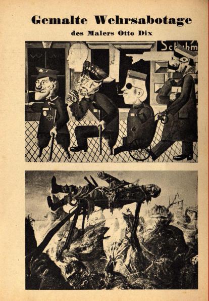 1937 war der Naziführung also "schon" die Frage, wie man zu Krieg und Wehrmacht steht, so wichtig, daß der künstlerische Aufschrei gegen den Krieg geahndet werden mußte. Nehmen wir die Haltungen entsprechend der Bebelschen SPD-Linie vor dem 1. Weltkrieg, finden wir inhaltlich klare und künstlerisch dem Zeitgeist entsprechende Darstellungen der Besorgnisse der Menschen:
