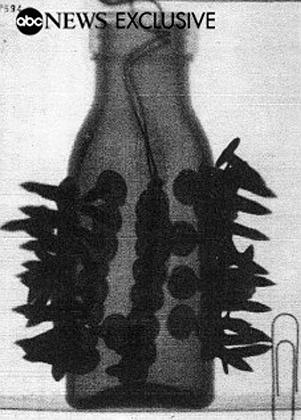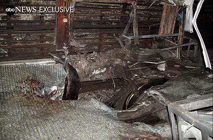 Fox News vidoe: the so called mastermind of the 7/7 London Bombings, Haroon Rashid Aswat, is a British Intelligence Asset ? Der "Spiegel" verbreitet am 28.7. Fotos mit folgendem Kommentar: "Die Bilder wurden vom TV-Nachrichtensender ABC veröffentlicht: Um die Sprengstoffflasche sind lange Nägel geklebt. Die Sprengsätze wurden in Luton in einem dort abgestellten Auto entdeckt.","Der Sprengsatz wurde in einem Plastiksack verschnürt ", "In kleinen Päckchen wurde der Sprengstoff verpackt. Laut ABC wurden die Bomben in dem Auto in Luton entdeckt. Die Ermittler gehen davon aus, dass die Terroristen am Bahnhof Luton in den Zug nach London stiegen", ![]() 16 dieser Bömbchen sollen gefunden worden sein. Und sie sollen sowohl denen vom 7.7. (explodiert) als auch denen vom 21.7. (nicht explodiert) ähneln, und zwar so sehr, dass von gleichen "Hersteller" die Rede ist. Warum dieses Aussehen als Mischung aus Molotow-Cocktail, Handgranate und mittelalterlichem Morgenstern ? Etwa weil das furchterregend AUSSEHEN soll ? Wie sollen da die kleinen Päckchen reingepasst haben ? Wie um alles in der Welt passen da "estimated at 4.5 kilograms" Sprengstoff rein ? ("the high explosives - 10 pounds in each of the backpacks ") Weshalb der grosse Plastiksack drumrum und dann noch ein Rucksack? Bei mir ergeben vier Büroklammern aneinandergelegt ca. 10 cm - wozu da ein Rucksack, und wie soll damit ein Loch von dieser (s.u.) Grösse im Boden des U-Bahn-Waggons entstehen ? Warum ist das Material und die Grösse der Flasche und die Anordnung der Nägel offensichtlich anders als auf dem Foto mit dem Plastiksack in derselben Fotostrecke ? Wenn militärisches TNT verwendet wurde