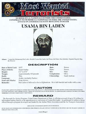 1. Die bin Laden und die Bushfamilien sind befreundet und haben verschiedene geschäftliche Kontakte im Öl- und Baugeschäft. "He met them twice" sagte das Wallstreet Journal, Baker zitierend, über den Präsidenten- ohne zu verraten, ob damit nur der laufende Monat oder die zeit seiner damals erst kurzen Präsidentschaft gemeint war. Osamas Bruder Salim starb bei einem Flugzeugunglück in Texas. 2. Osama und die AlCIAda wurden von den USA zur Terrorisierung Afghanistans, Bosniens usw. aufgebaut. 3. Den Internationalen
