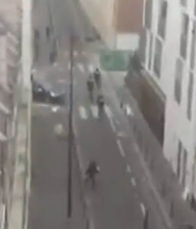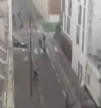 http://www.liveleak.com/view?i=bc6_1420632668 Erschiessung des Polizisten, Aufnahme vom ?. Obergeschoss Hausnummer 62
