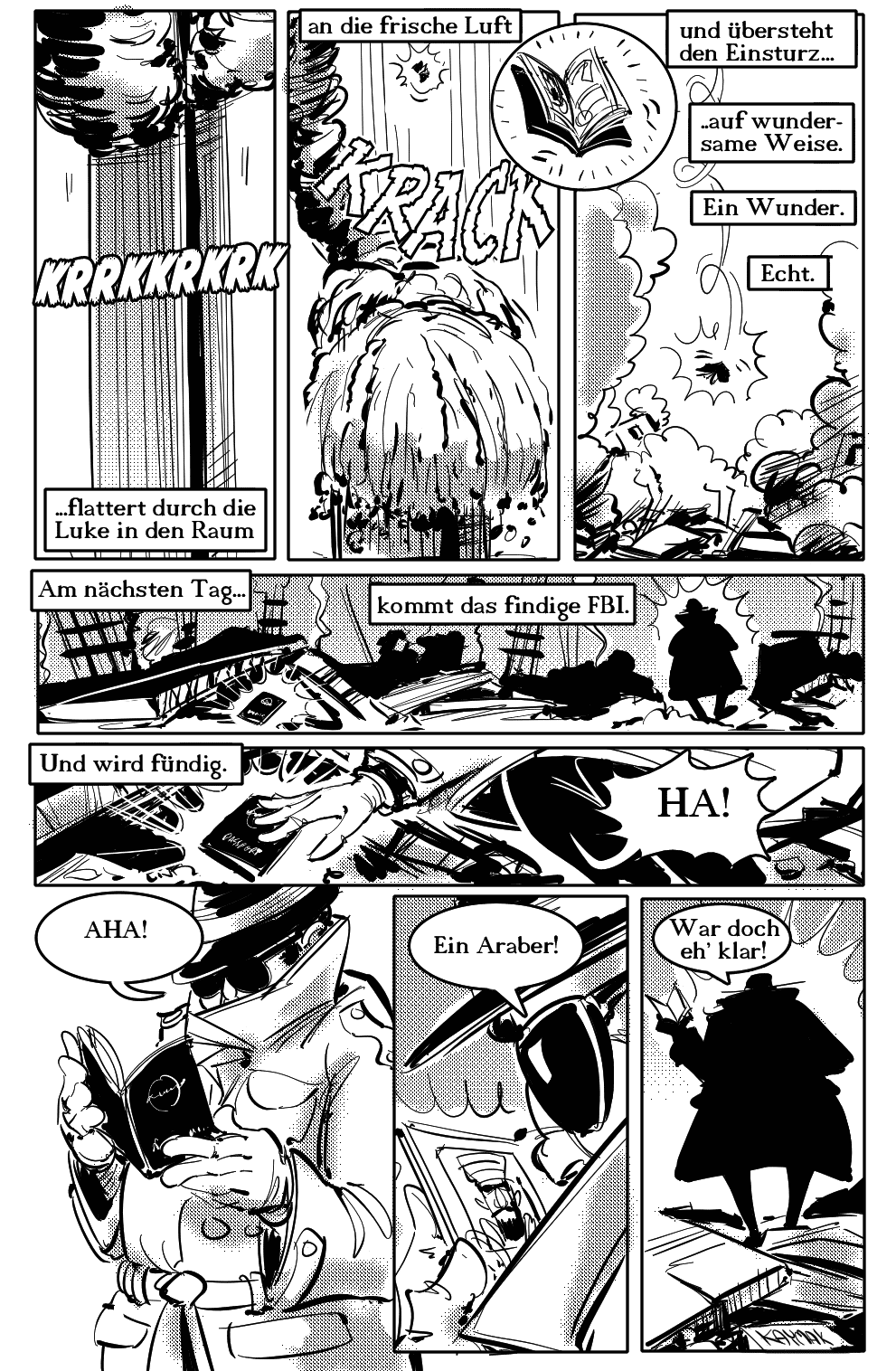 Und so geschah es, daß zweifelsfrei der Islamismus bekriegt werden mußte - er war identifiziert. Korrektur: Wir wurden darauf aufmerksam gemacht, daß eine version der Geschichte lautet, der Paßfund sei noch VOR dem Zusammenbruch des WTCs erfolgt ! Also am 11.9., nicht "erst" am Tag danach ! Hoppla, sagt da doch der Fachmann, so schnell wurde noch selten ein Mörder identifiziert - noch bevor die meisten seiner opfer starben. Teppischmesser - flatternde Pässe